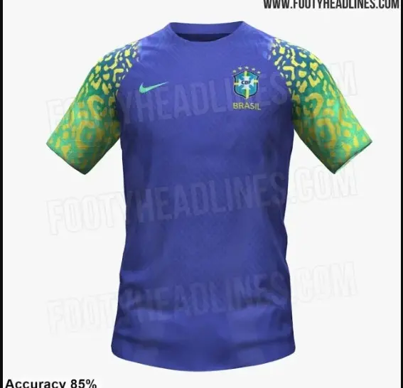 Ainda segundo o Footy Headlines, a segunda camisa da Seleção terá detalhes em verde e amarelo nas mangas, com uma estampa semelhante à pele de um leopardo.
