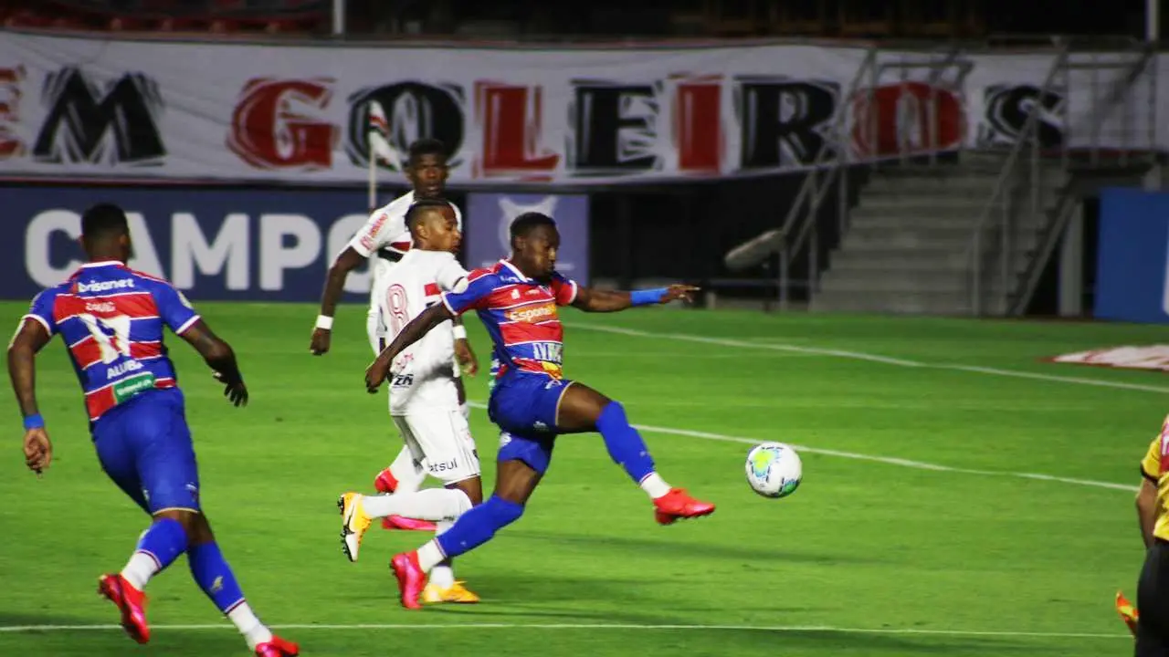 O duelo começou muito estudado. Com quatro velocistas no ataque, o Fortaleza se armou para o contra-ataque, enquanto o São Paulo tentou manter a posse de bola. As estratégias deixaram a partida muito truncada, sem chances de perigo.
