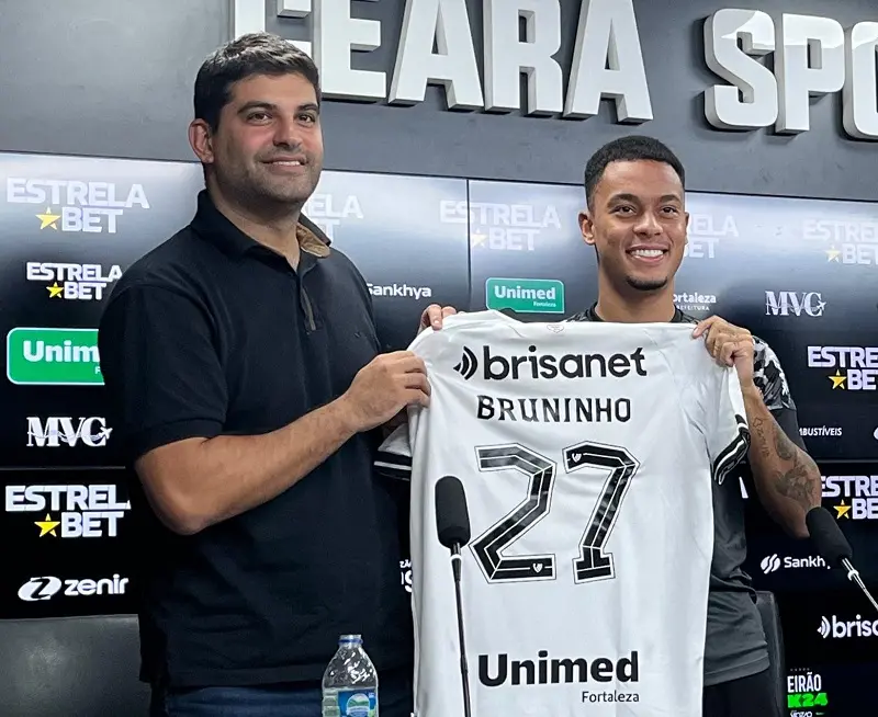 Bruninho é o novo camisa 27 do Ceará. O jogador de 23 anos é mais um contratado para o meio-campo. O atleta, que foi apresentado na tarde desta quinta-feira (18), em Porangabuçu, falou sobre as características como atleta, de ter trabalhado com Mancini e foco no acesso para a Série A. Ele atuou no Guarani-SP e chegou por empréstimo.
