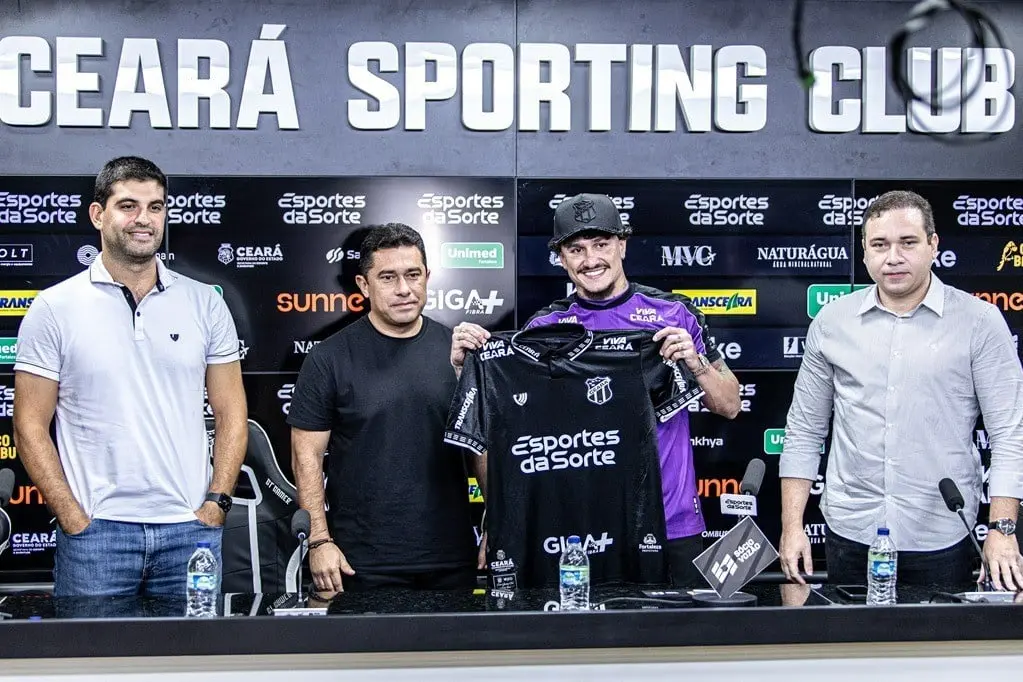 O meia Vina foi apresentado oficialmente no Ceará na tarde quarta-feira (6). Sua contratação foi cercada de expectativas das torcidas e dúvidas sobre a concretização do negócio. Na coletiva de imprensa, o presidente João Paulo Silva esteve ao lado do CEO de futebol Haroldo Martins e o executivo de futebol Lucas Drubscky para anunciar o meia.