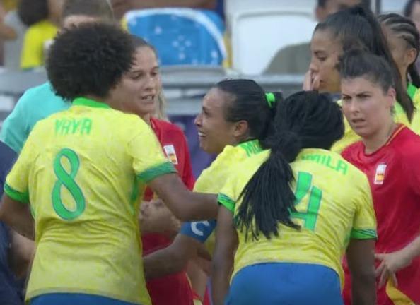Lance aconteceu em jogo entre Brasil e Espanha, no futebol feminino