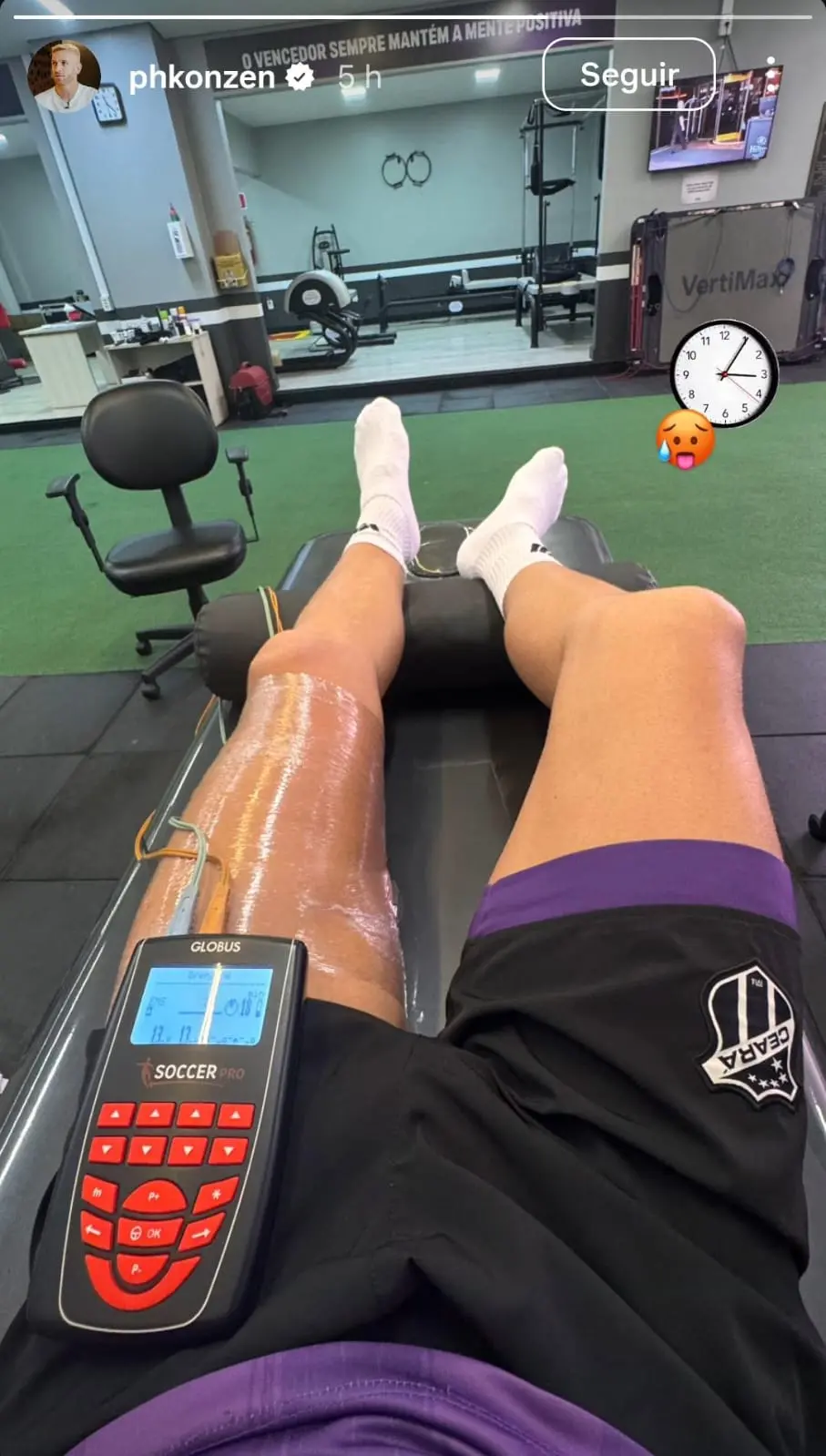 Atacante do Ceará, Pedro Henrique publicou foto em que aparece na sala de fisioterapia do Centro de Saúde e Performance (CESP) do clube nesta quinta-feira (27). O jogador sentiu a coxa esquerda no duelo contra o Mirassol, na rodada passada do Brasileirão, fora de casa.