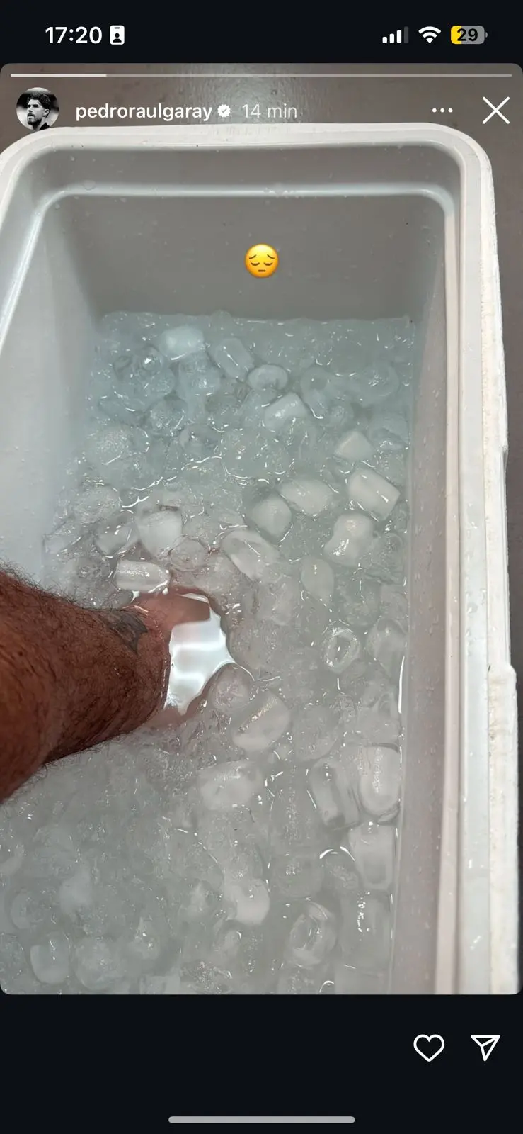 Através de seu perfil nas redes sociais, Pedro Raul mostrou uma foto de seu tornozelo em um tratamento com gelo, na tentativa de acelerar o processo de recuperação.