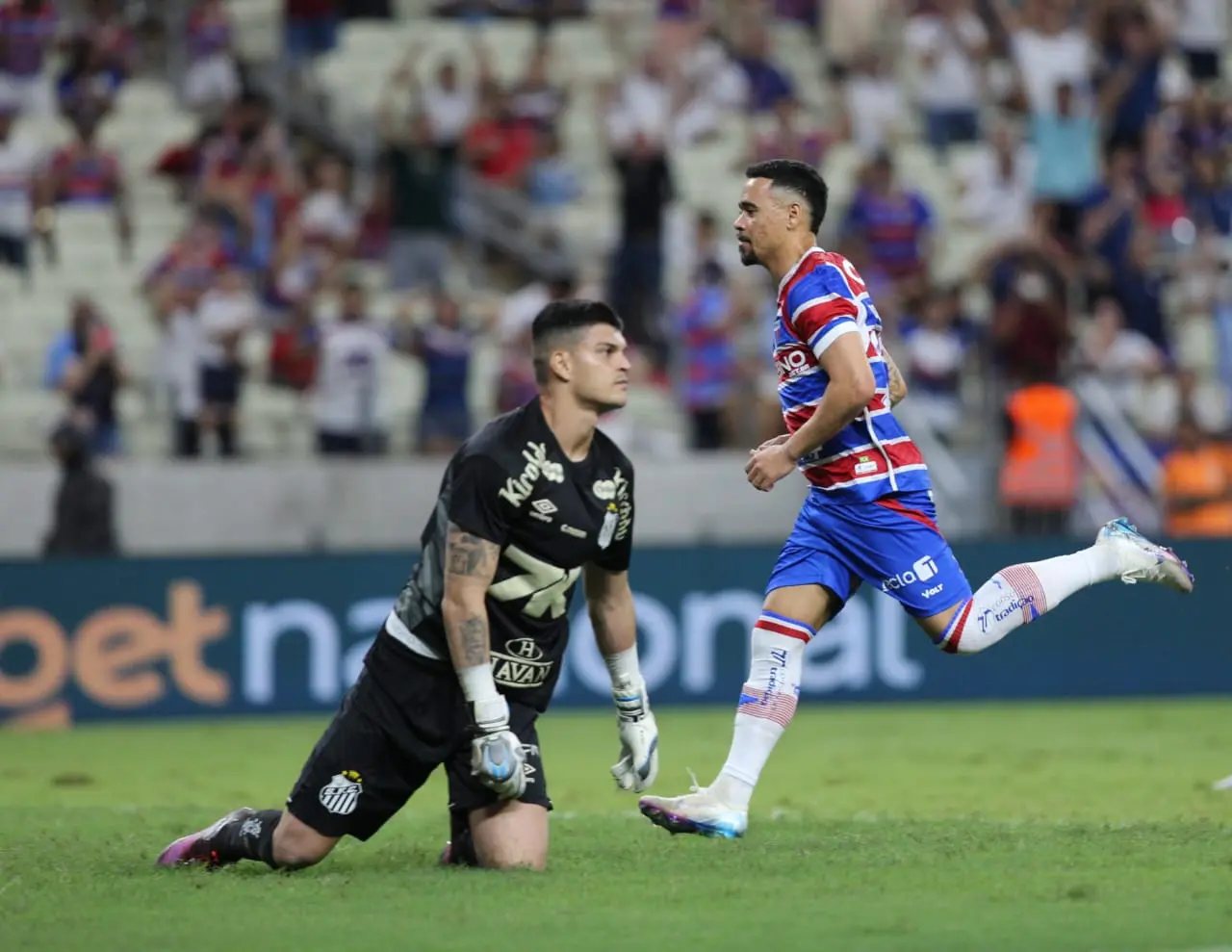 Yago Pikachu entrou no segundo tempo do jogo do Fortaleza contra o Santos e marcou os dois gols do Tricolor em cobranças de pênalti. O esforço, no entanto, não foi suficiente. A equipe comandada por Juan Pablo Vojvoda foi derrotada por 3 a 2, com gol nos acréscimos, na noite desta quinta-feira (12), na Arena Castelão. Com o resultado, o time segue na zona de rebaixamento do Brasileiro. O jogador lamentou a situação.