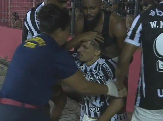 O atleta de 32 anos correu para celebrar o momento com a torcida Alvinegra, que acompanhou o jogo do setor de visitantes. Um policial se aproximou do alambrado e lançou gás de pimenta no jogador.