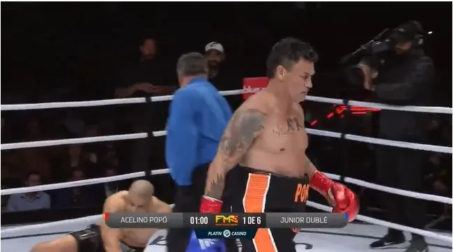 Tetracampeão mundial de boxe, Acelino Popó levou menos de um minuto para nocautear Junior Dublê, no Fight Music Show 3 deste sábado (26). A luta protagonizada pelos dois foi a grande atração do evento, realizado em São Paulo, mas não durou muito tempo.