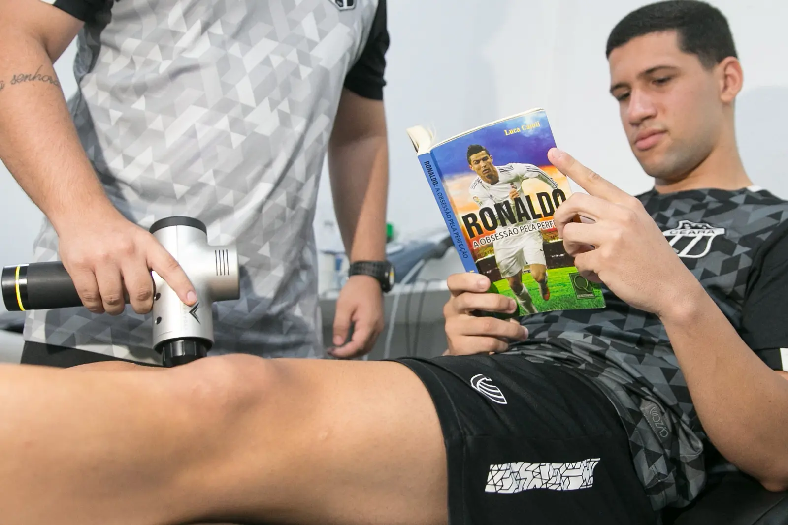 "Não tinha costume, nunca fui um cara de ler, eu aprendo mais por vídeo, prática, mas me machuquei em dezembro do ano passado, fiz uma cirurgia em fevereiro deste ano e vim para a fisioterapia. Aqui, já li a biografia do Cristiano Ronaldo uma vez e recomecei, para gravar tudo na memória, de pequeno em Portugal até virar esse craque”, explicou Pedro Henrique, de 18 anos.
