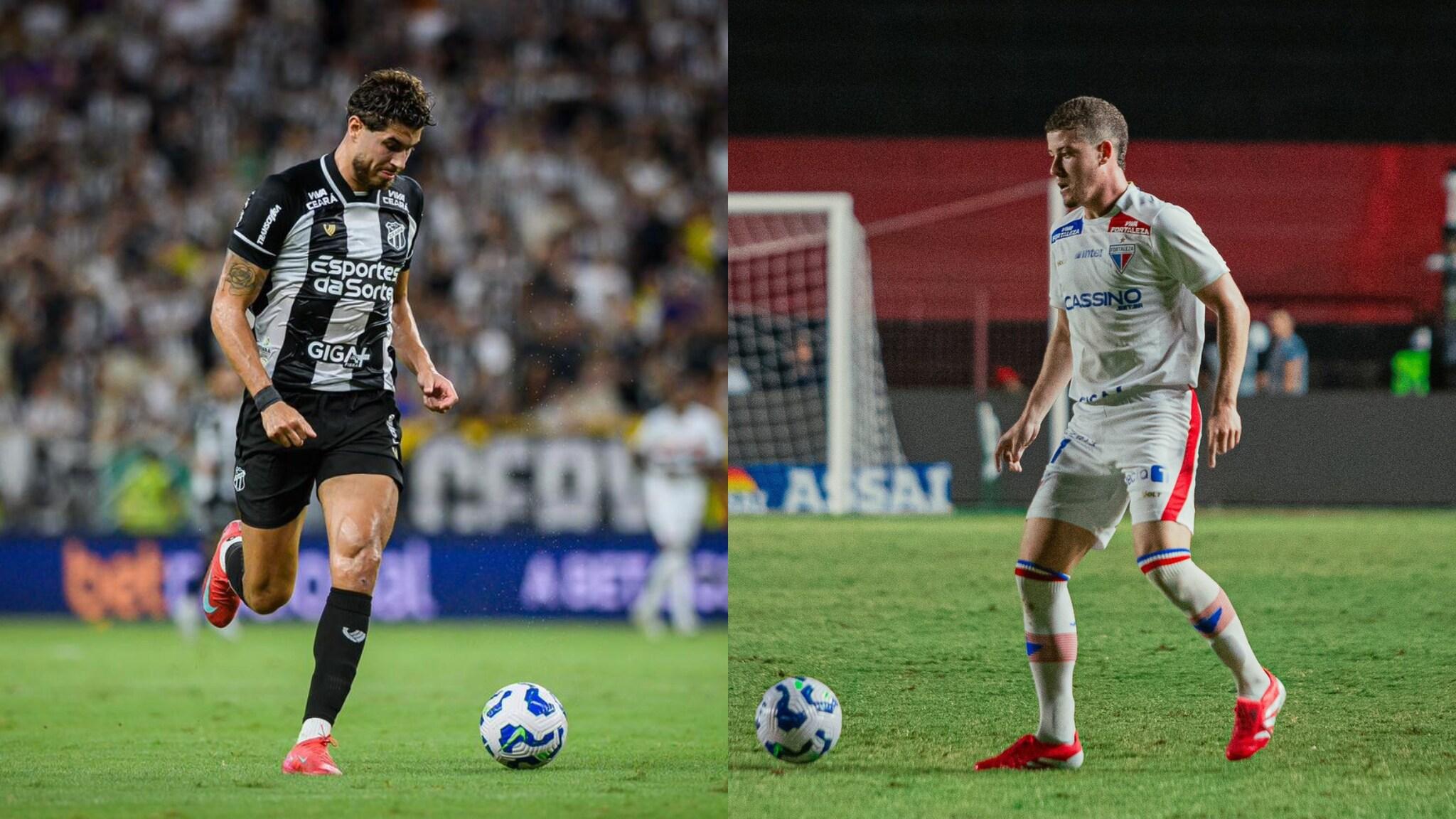 Legenda: Pedro Raul, do Ceará, e Bruninho, do Fortaleza, em jogos da sexta rodada da Série A do Brasileirão 2025