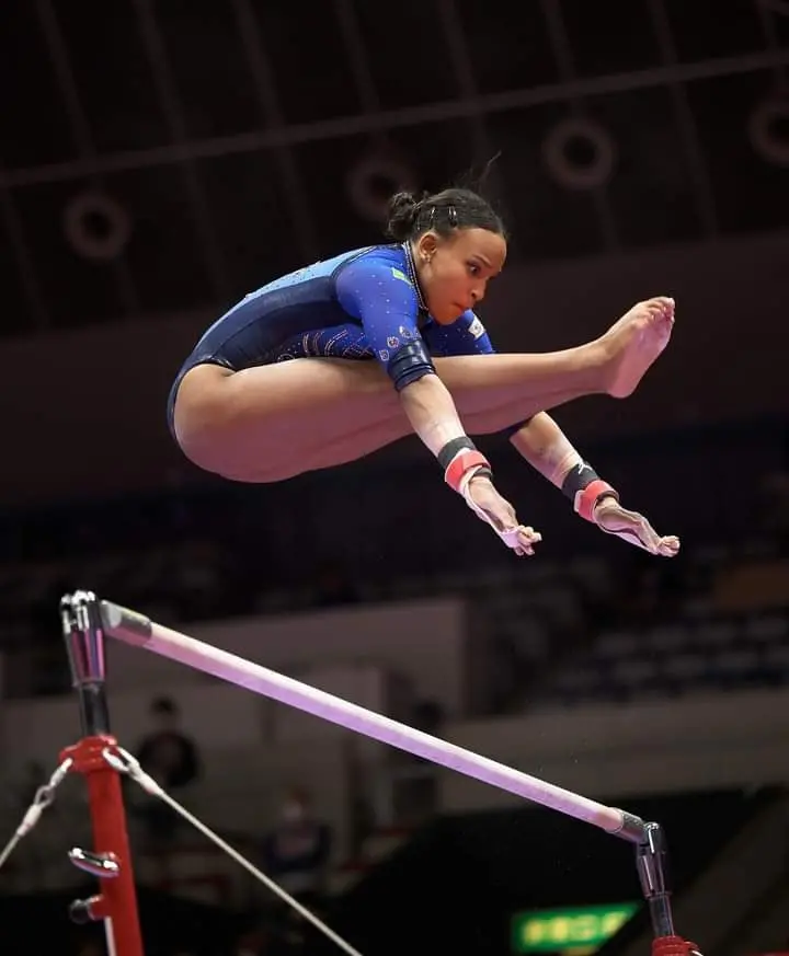 A ginasta brasileira conseguiu 14.633 pontos na final das barras assimétricas e levou a prata no mundial de Kitakyushu, no Japão. Além da prata, ela já havia conquistado o ouro no salto.