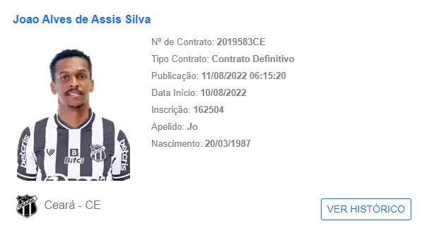 O atacante Jô está apto a estrear pelo Ceará. O atleta, de 35 anos, teve contrato publicado no Boletim Informativo Diário (BID) da CBF nesta quinta-feira (11) e fica à disposição de Marquinhos Santos.