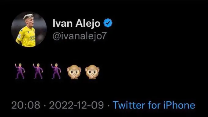 No Twitter, Alejo publicou emojis de macaco e de um homem dançando, em alusão as danças proferidas por Vinícius Júnior ao balançar as redes contra os adversários.