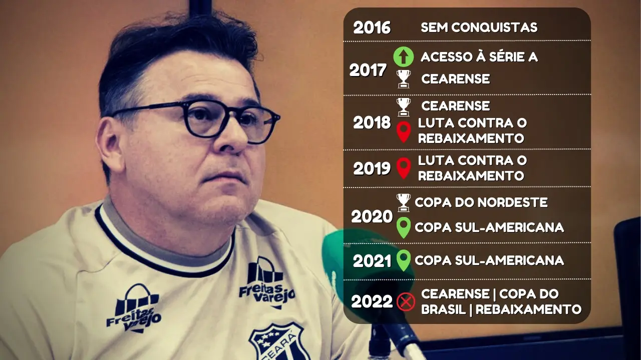 "Eu estou saindo do Ceará porque desencantei com o clube. As coisas que me davam prazer, deixaram de dar prazer. Perdi o encanto. Se não tenho amor pelo que eu faço, eu vou embora. Eu consigo enfrentar pressão e ameaça. Uma coisa que tenho é coragem, sempre tive, nunca tive medo. Não tenho medo" desabafou.