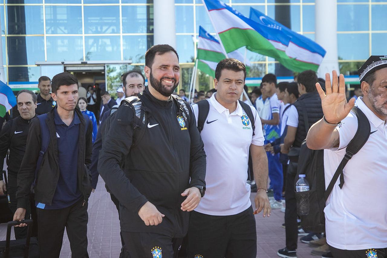 Maior campeã da Copa do Mundo de futsal, com cinco títulos, a seleção brasileira desembarcou na manhã desta terça-feira em Bukhara, no Uzbequistão, onde estreia na edição de 2024 da competição no sábado, às 9h30 (de Brasília), contra Cuba.