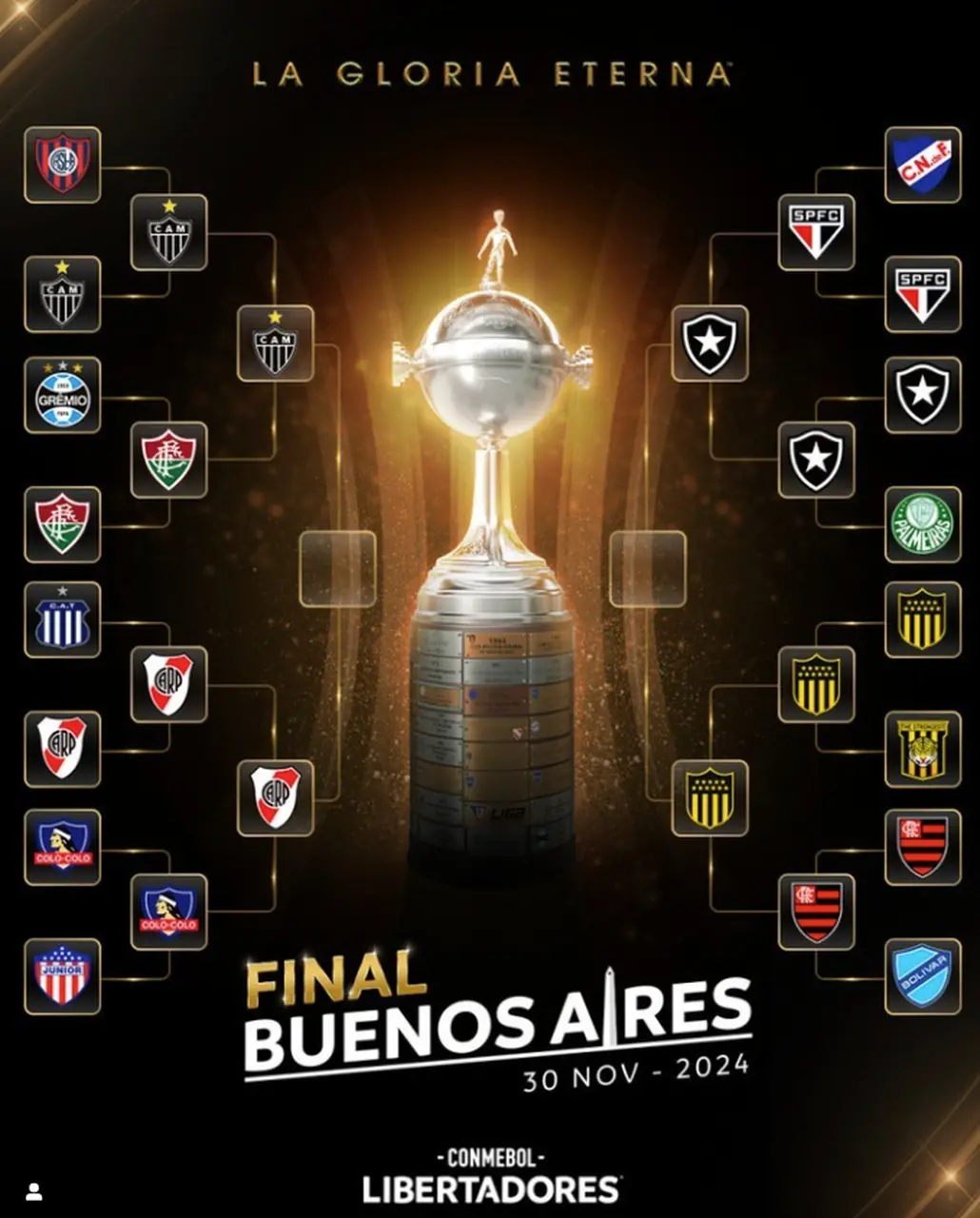 A decisão da Libertadores de 2024 será em jogo único em Buenos Aires, na Argentina. A Conmebol ainda não difiniu o local do jogo, que será no dia 30 de novembro.