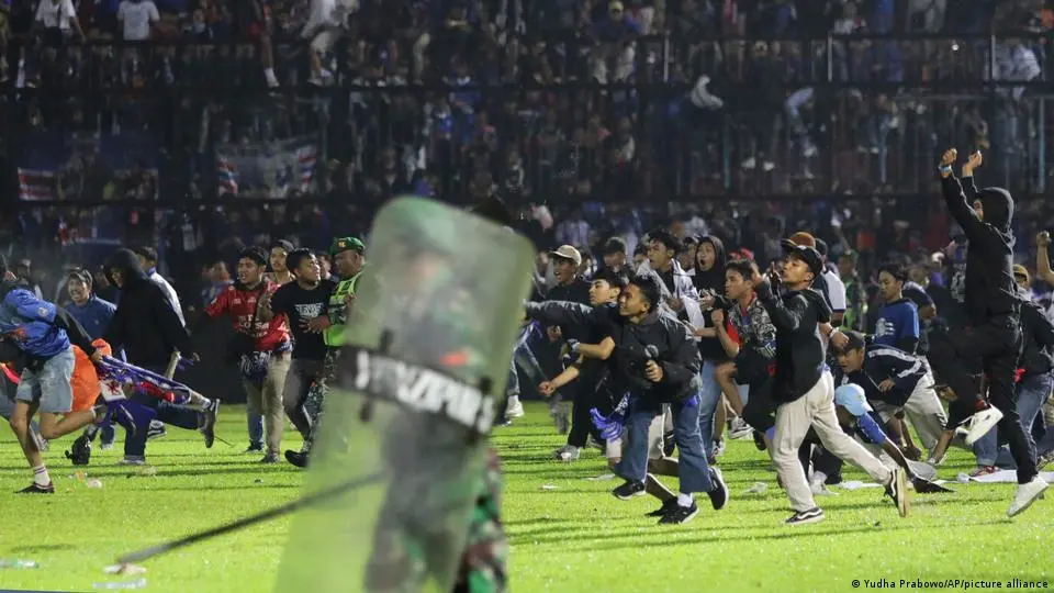 Torcedores do Arema FC invadiram o gramado do estádio Kanjuruhan, em Malang, no oeste do país, depois que o time perdeu por 3 a 2 para o Persebaya Surabaya. Foi a primeira derrota em mais de duas décadas para o arquirrival da equipe. As informações são do G1.