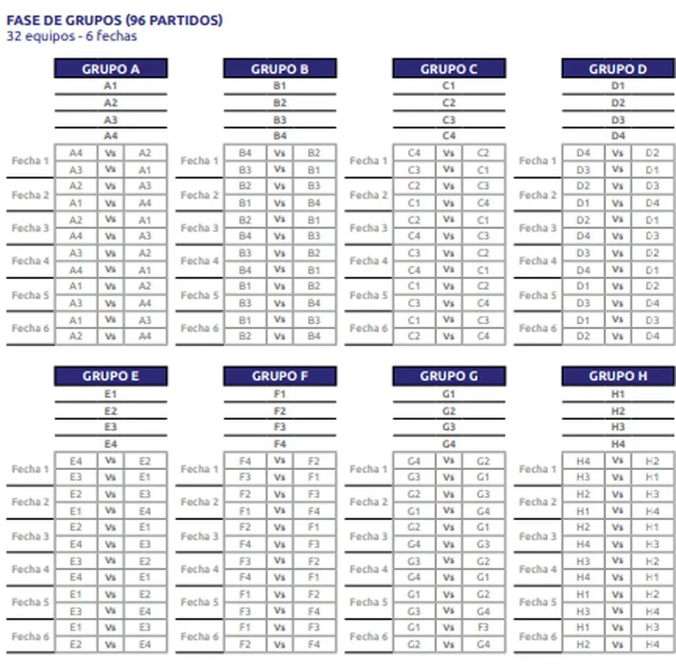 Serão 32 equipes divididas em oito grupos com quatro equipes cada. Os líderes de cada grupo se classificam para o mata-mata e irão enfrentar os os oito terceiros colocados da fase de grupos da Libertadores.