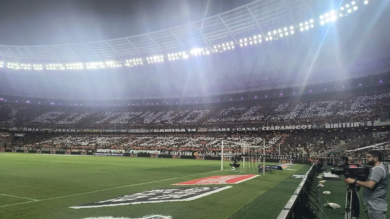 A torcida do Ceará protagonizou uma grande festa nas arquibancadas da Arena Castelão neste domingo (3) no empate em 1 a 1 com o Flamengo, exibindo um mosaico que dizia a frase “Eu tenho clube para torcer”.