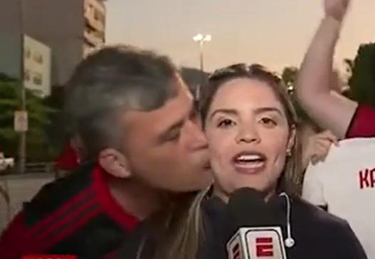 Sem permissão, o homem beijou a repórter enquanto ela fazia uma entrada ao vivo nas proximidades do estádio. Ao fundo, torcedores do Flamengo cantavam músicas quando Marcelo beijou o rosto dela sem permissão. Desconfortável, a jornalista deixou o quadro da imagem em seguida. Logo o homem foi detido.