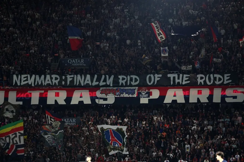 A faixa foi colocada atrás de um dos gols, no local onde ficam os ultras, maior torcida organizada da equipe francesas. Em inglês, a mensagem dizia o seguinte: "Neymar: Finalmente nos livramos do malcriado."