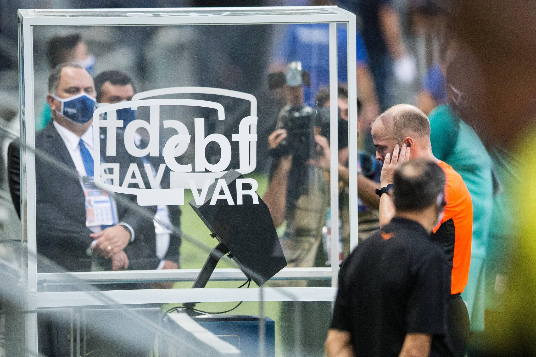 Para a torcida, o toque de mão de Luiz Otávio não deveria configurar penalidade. Em seguida, uma possível penalidade em cima de Vina também motivou bronca.