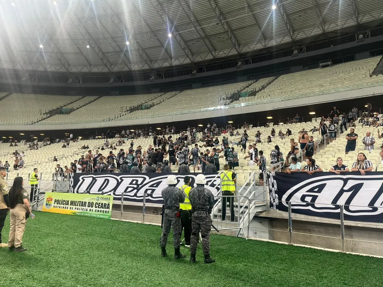 Torcida do Ceará protesta contra diretoria ainda durante o jogo no Castelão; veja imagens
