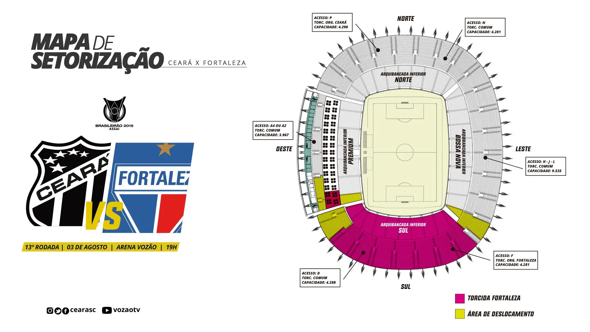 Um dos planos de sócio do Ceará, o "Time do Povo", permite que o torcedor ocupe o Setor Sul da Arena Castelão. Como o espaço está destinado à torcida do Fortaleza, eles serão realocados para a ala Inferior Norte.