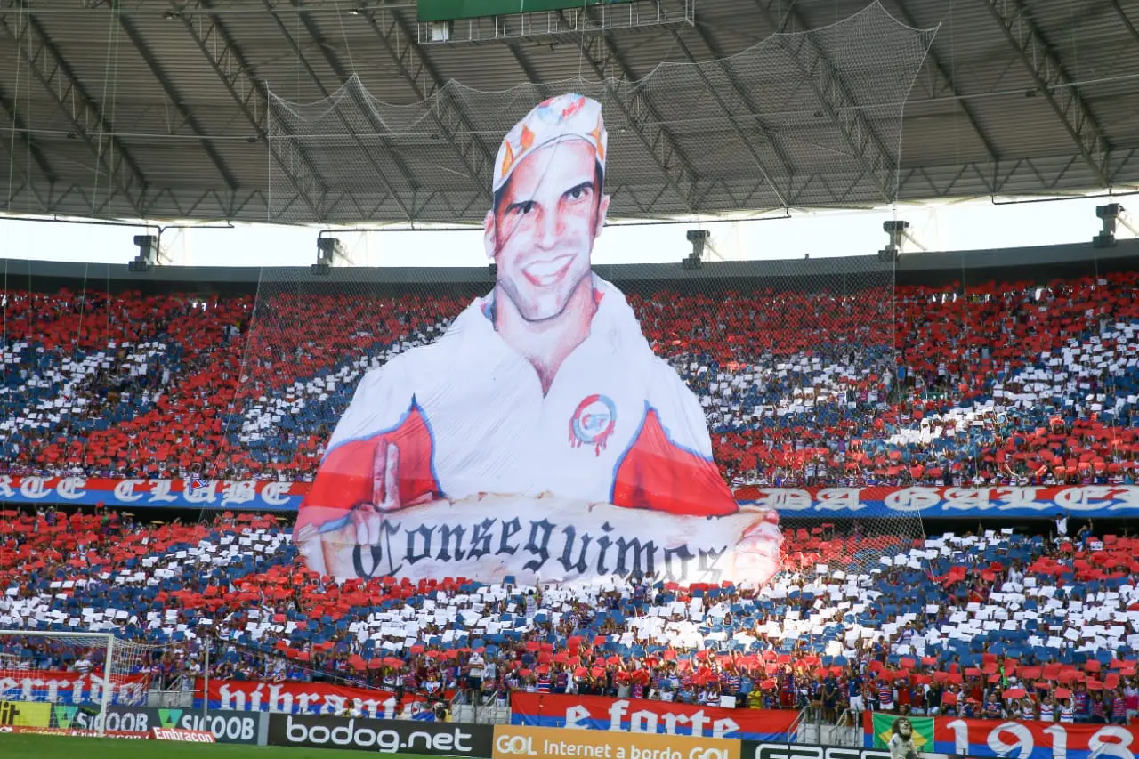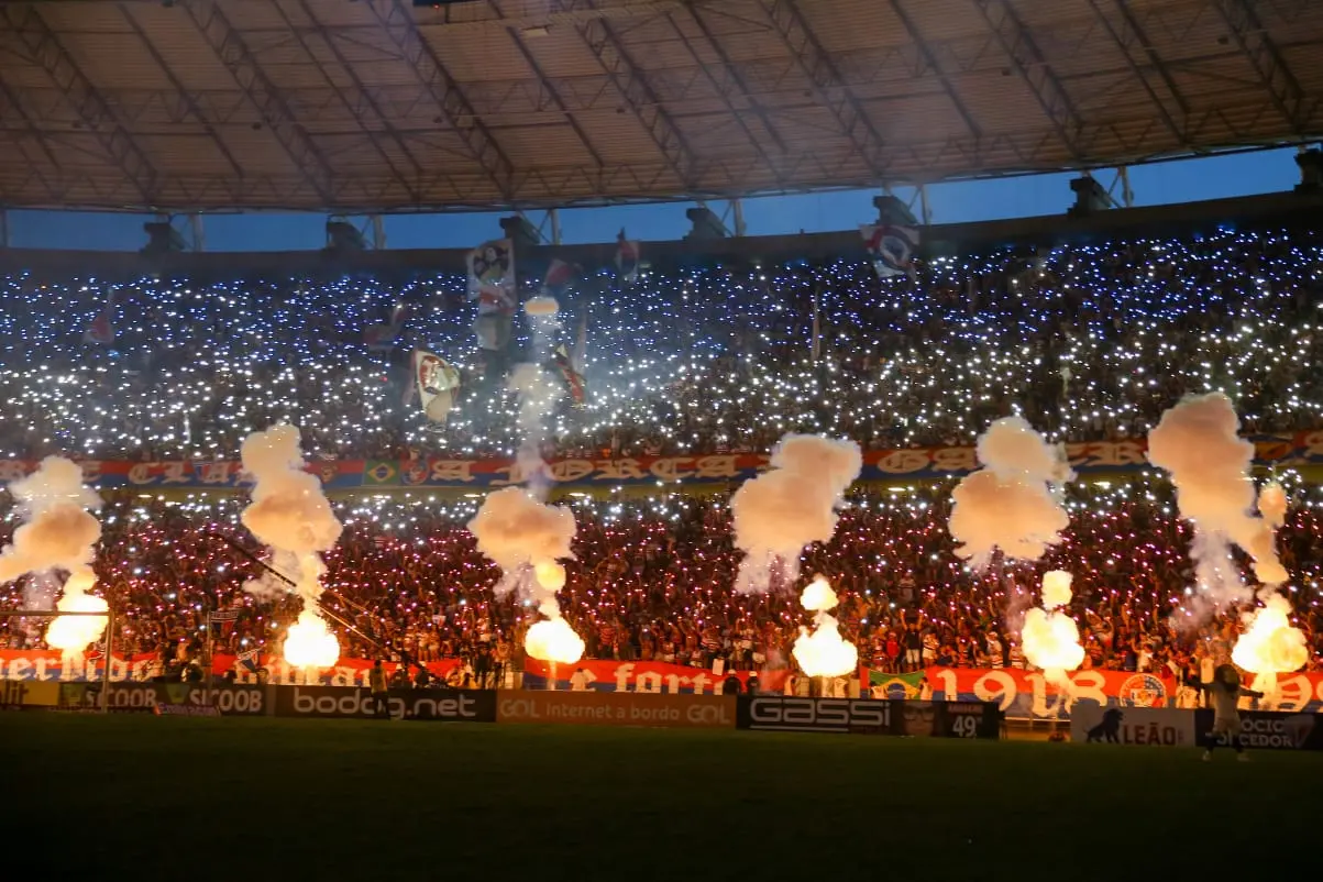 A festa estava pronta antes mesmo da bola rolar. Palco de tantas conquistas da história do Fortaleza Esporte Clube, a Arena Castelão foi totalmente preenchida neste domingo (8) para o jogo válido pela 38ª rodada da Série A do Campeonato Brasileiro contra o Bahia. E a homenagem ao ano mais perfeito do Leão veio em forma de incentivo e abraço. Assim, desde o hino nacional, o apoio foi incondicional e veio expresso também em mosaicos.