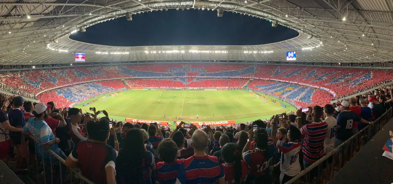 Torcida do Fortaleza faz mosaico permanente no Castelão lotado contra o Colo-Colo; veja imagens