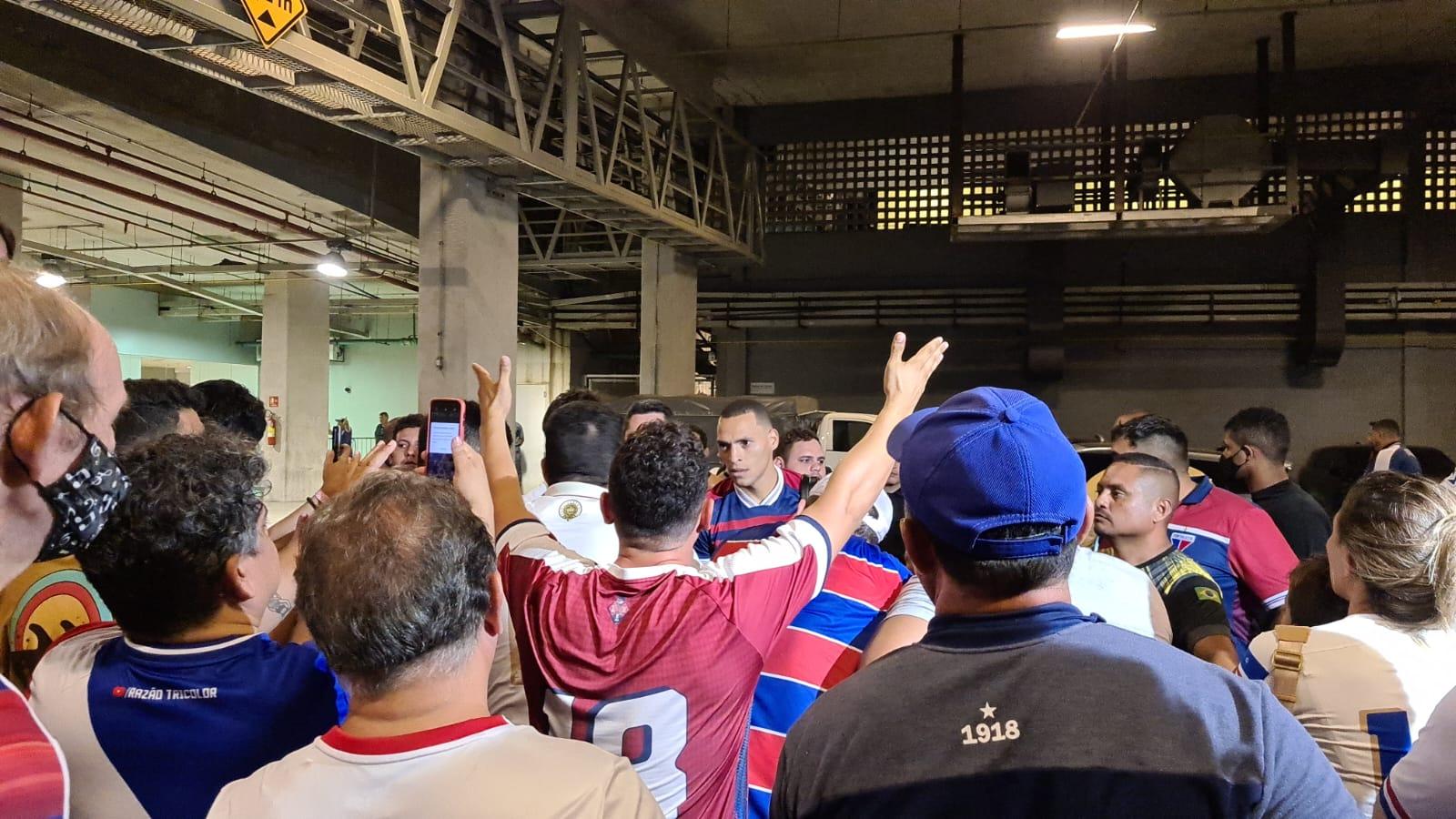 Torcedores do Fortaleza protestaram na Arena Castelão, neste domingo (12), após o empate sem gols com o Athletico-PR pela 11ª rodada da Série A de 2022. O grupo se posicionou na saída dos jogadores no estacionamento do estádio e fez cobranças por melhor desempenho no Brasileirão.