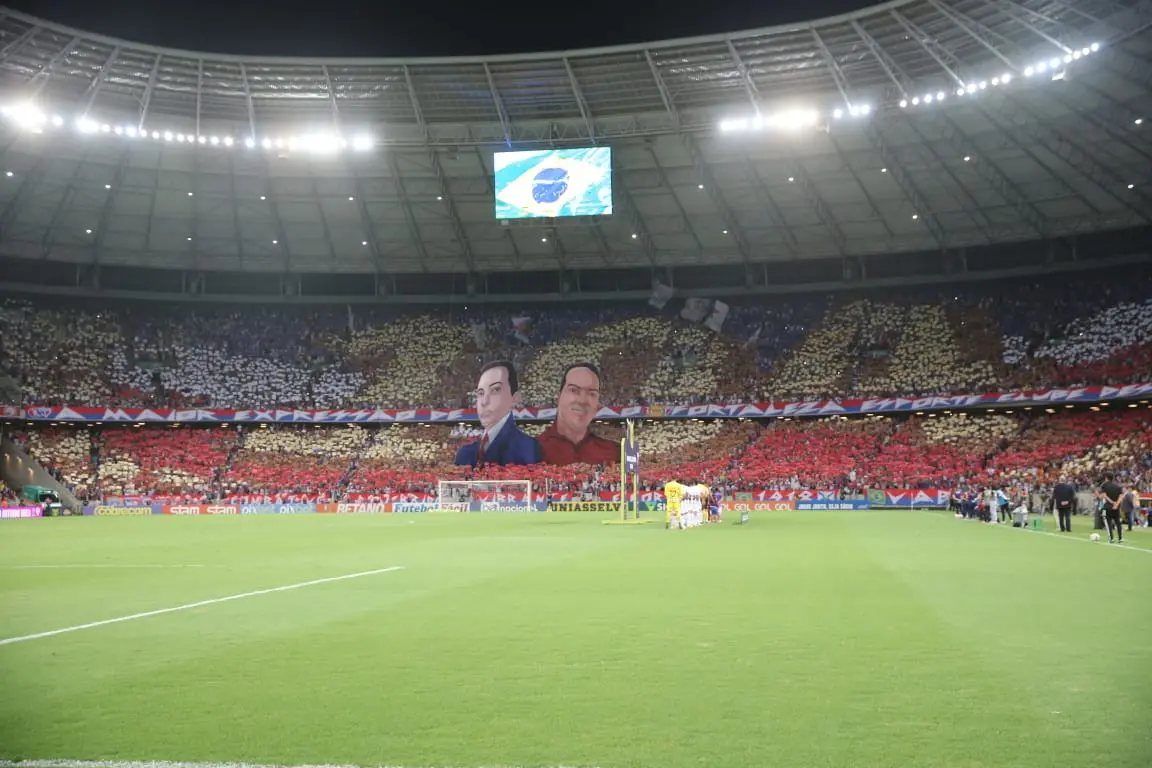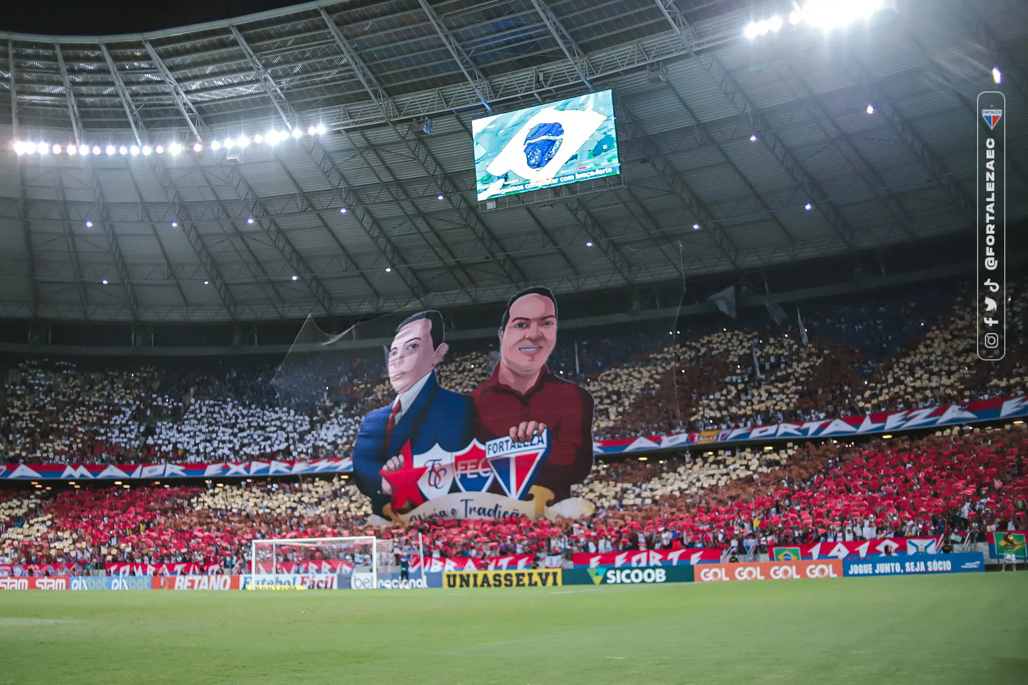 A torcida do Fortaleza realizou nesta segunda-feira (24), no empate entre Fortaleza e Atlético-MG, o mosaico em homenagem ao aniversário de 104 anos do clube, com as imagens de Alcide Santos, fundador do Tricolor do Pici, e o atual presidente Marcelo Paz, com slogan “de Alcide Santos a Marcelo Paz”, divulgado pela equipe nas redes sociais.