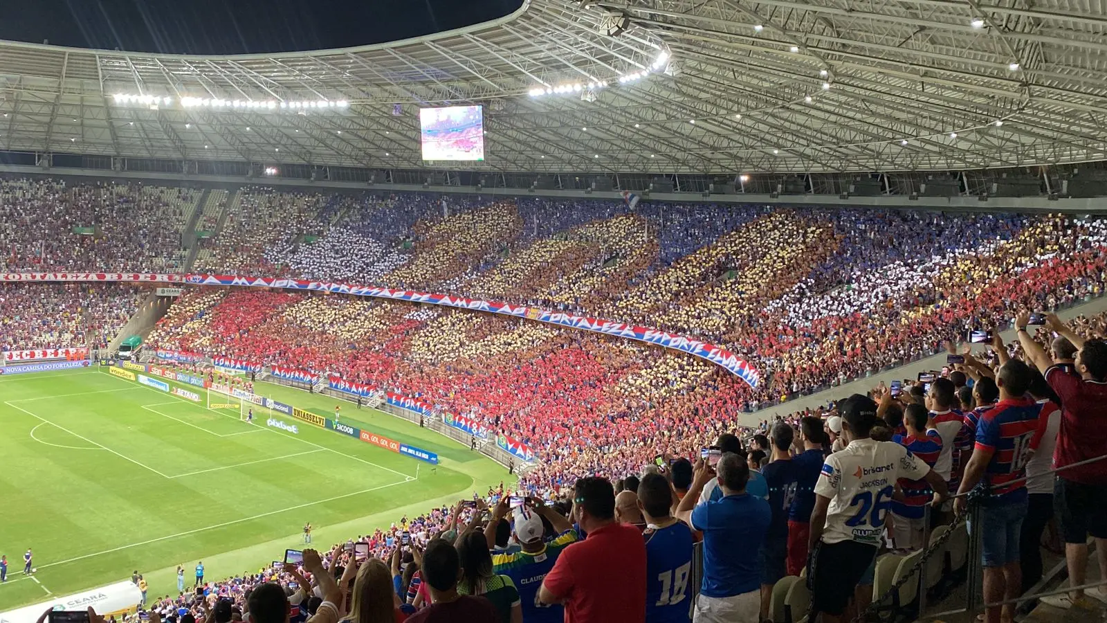 Torcida do Fortaleza realiza mosaico em homenagem ao aniversário com menção a Marcelo Paz; veja