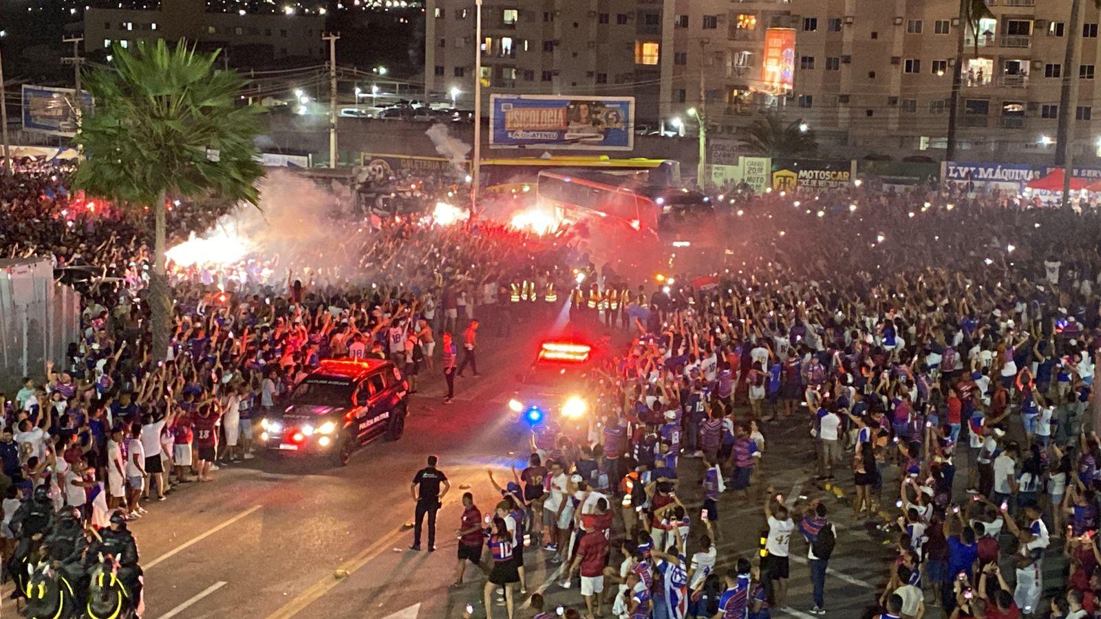 Após deixar o Centro de Excelência Alcides Santos, no Pici, por volta das 19h15, o ônibus com a delegação do Fortaleza partiu em direção ao Castelão, escoltado por batedores. Na chegada ao estádio, centenas de torcedores cercaram o veículo com gritos de incentivo, sinalizadores e fogos de artifício.
