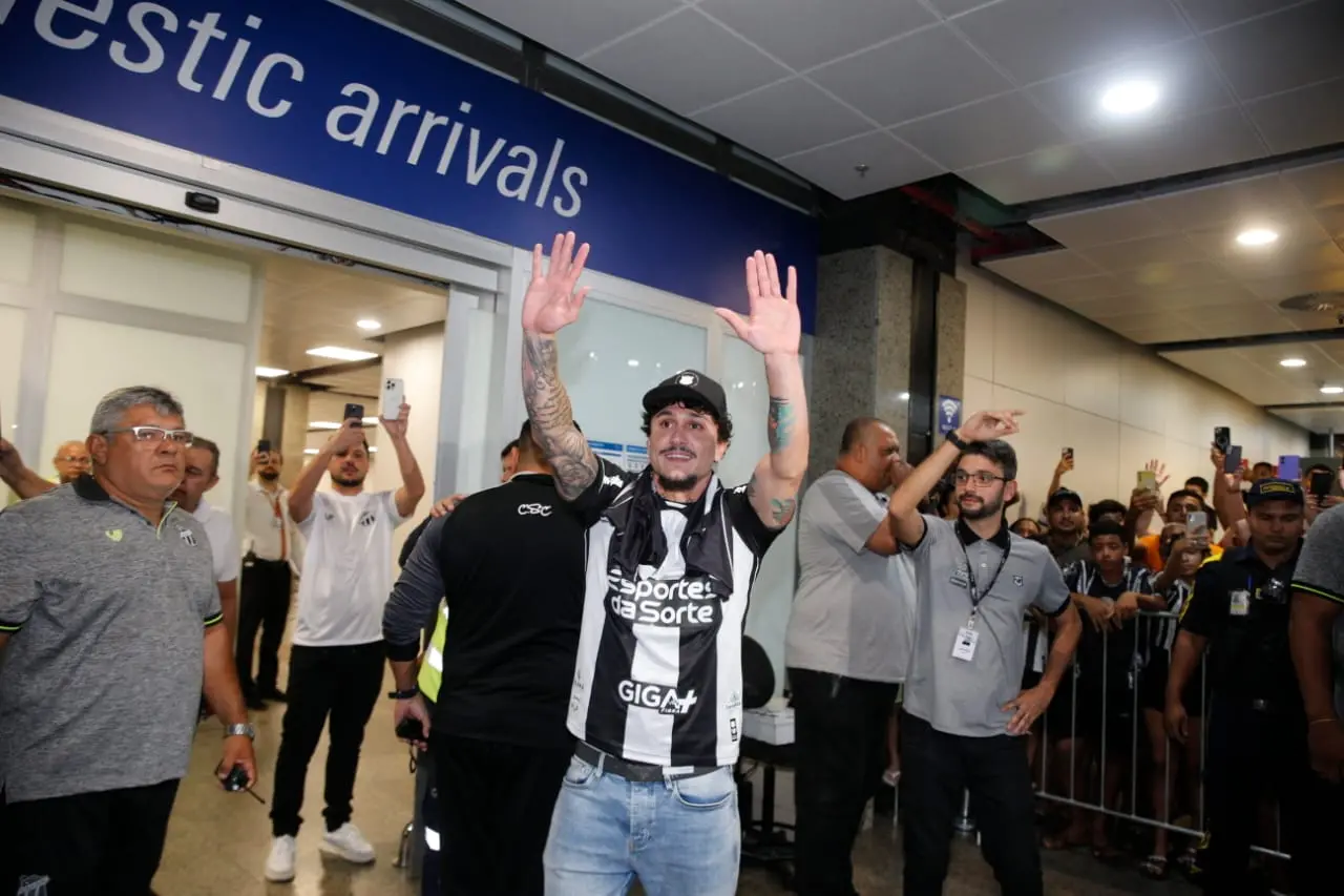 O reencontro entre ídolo e torcida finalmente aconteceu. Na noite desta quinta-feira (31), o meia Vina desembarcou no Aeroporto Internacional Pinto Martins, em Fortaleza, por volta das 21h17, e foi recepcionado com entusiasmo por dezenas de torcedores do Ceará. O camisa 29, que retorna ao clube após passagem entre 2020 e 2023, fez seu primeiro contato com a massa alvinegra ainda no saguão, onde recebeu palavras de apoio.