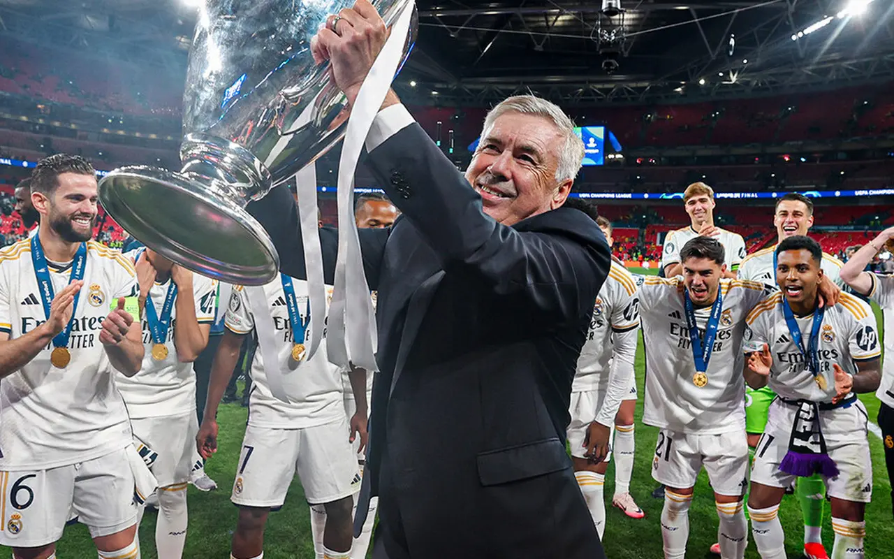 O Real Madrid celebrou neste domingo o 15º título da Liga dos Campeões da Europa ao lado de mais de meio milhão de torcedores, segundo a imprensa local, que lotaram as ruas de Madri. Decisivo na vitória por 2 a 0 sobre o Borussia Dortmund, o atacante Vinicius Júnior foi ovacionado, inclusive pelo técnico Carlo Ancelotti. O treinador entrou no coro para o brasileiro conquistar a 'bola de ouro', prêmio dado ao melhor jogador do mundo eleito pela Fifa.
