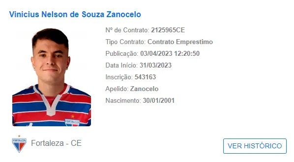 O meia Vinícius Zanocelo foi regularizado e já pode estrear pelo Fortaleza nesta quarta-feira, pela Copa Sul-Americana. Ele teve o nome publicado no Boletim Informativo Diário da CBF nesta segunda-feira (3), e pode ser utilizado pelo técnico Juan Pablo Vojvoda contra o Palestino/CHI, nesta quarta, no Castelão, pela Sul-Americana, já que foi incrito pelo Leão na competição internacional.