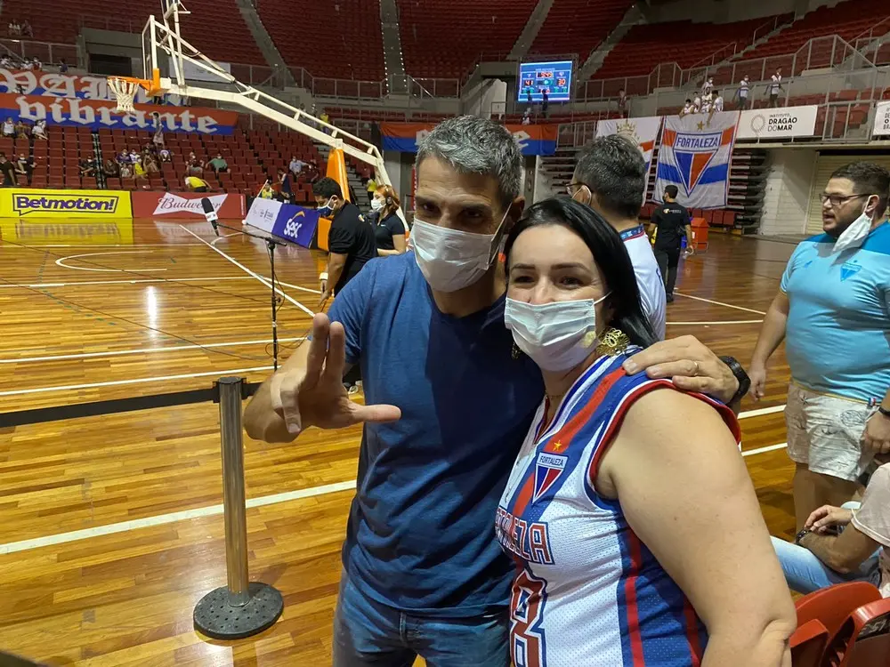 Vojvoda acompanha partida do Fortaleza BC no NBB e recebe carinho da torcida