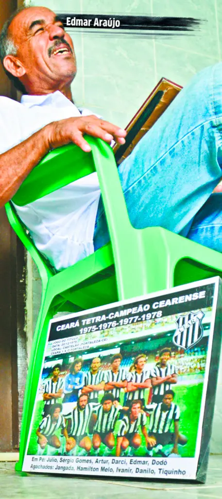 Futebol eficiente, amor à camisa e raça marcaram durante 22 anos a carreira de um dos principais jogadores da história do Ceará Sporting, o volante Edmar Oliveira Araújo, atualmente com 66 anos de idade. O craque é o único atleta a ter participado das quatro campanhas do primeiro tetracampeonato do Alvinegro - de 1975 a 1978. Com a camisa do clube, atuou em 582 oportunidades, quase todas como titular absoluto. O que muita gente não sabe é que Edmar entrou em campo inúmeras vezes contundido, sob efeito de infiltrações, antibióticos e outros medicamentos permitidos à época pela legislação desportiva, sacrificando a própria saúde em defesa das cores do Ceará.