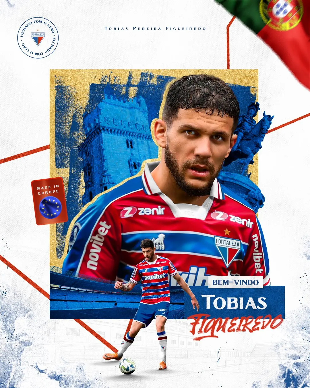 O zagueiro português Tobias Figueiredo, anunciado como o novo reforço do Fortaleza, desembarca na noite desta quinta-feira (13) em Fortaleza (CE). O jogador de 29 deve realizar os primeiros trabalhos na sede do clube, no Pici, na sexta-feira (14).