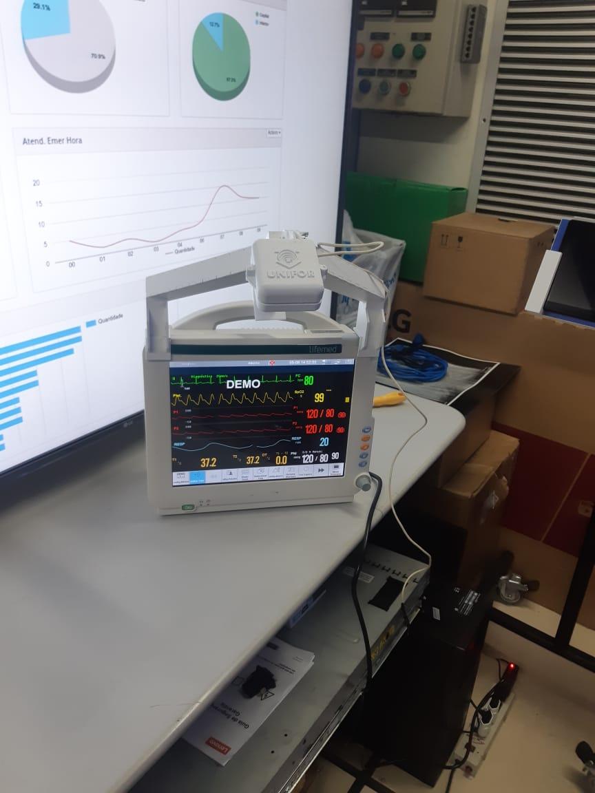 Equipamento de Visualização e Alerta (EVA), desenvolvido por pesquisadores da Universidade de Fortaleza (Unifor), monitora sinais vitais do paciente, como frequências respiratória e cardíaca