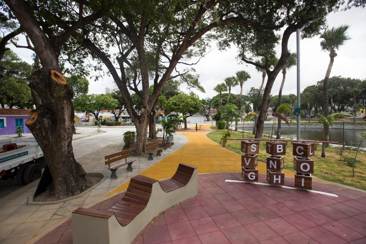 Na tarde de hoje, o equipamento foi entregue pela Prefeitura de Fortaleza com novo mobiliário urbano, pintura e espaços lúdicos infantis. A obra foi contemplada por um pacote de R$ 40 milhões voltado à reforma de espaços urbanos, anunciado em janeiro de 2020.