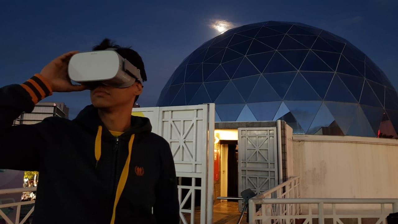 O casal Elivania Rodrigues e Ricarte Antunes abraçou a ideia. Eles tinham acabado de assistir uma apresentação no Planetário com a filha Alicia Maria. “Eu já tinha usado essa tecnologia de realidade virtual numa viagem que fiz a Gramado. É legal para conversar sobre a teoria da relatividade. Mexe com a imaginação”, relata Ricarte.