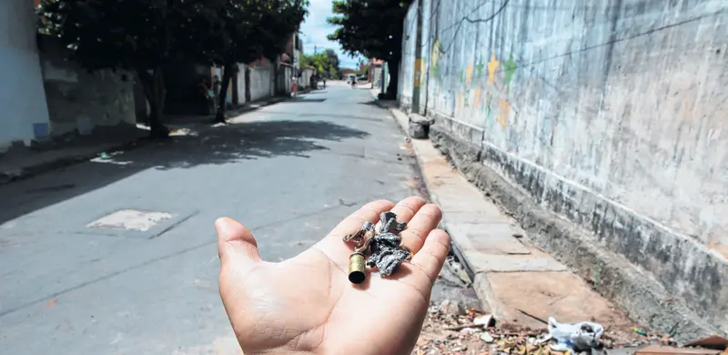 Durante a manhã de ontem, ainda era possível encontrar "lembranças" da matança: manchas de sangue pelo asfalto e pelas paredes das residências, cápsulas de balas e projeteis.