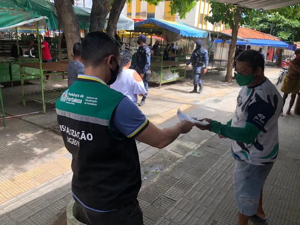 Em ação conjunta, a Agência de Fiscalização de Fortaleza (Agefis) e a Guarda Municipal circularam por feiras da Capital e fizeram distribuição de máscaras na manhã deste sábado (20). Os bairros escolhidos para a ação foram o São Cristóvão, o Jangurussu e a Messejana.