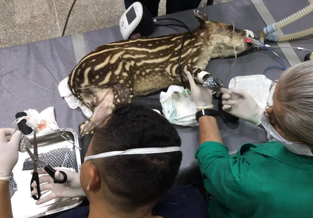 Conforme Dr. Edmar Maciel, o cenário é desafiador, já que as queimaduras atingem grandes áreas dos corpos dos animais. “Eles estão caminhando na floresta que pegou fogo, e quando pisam queimam as patas – ou a cobra, o corpo inteiro. São animais de grande porte, geralmente queimam as quatro patas. O procedimento demora até seis horas, entre anestesia e finalização”, calcula o médico.