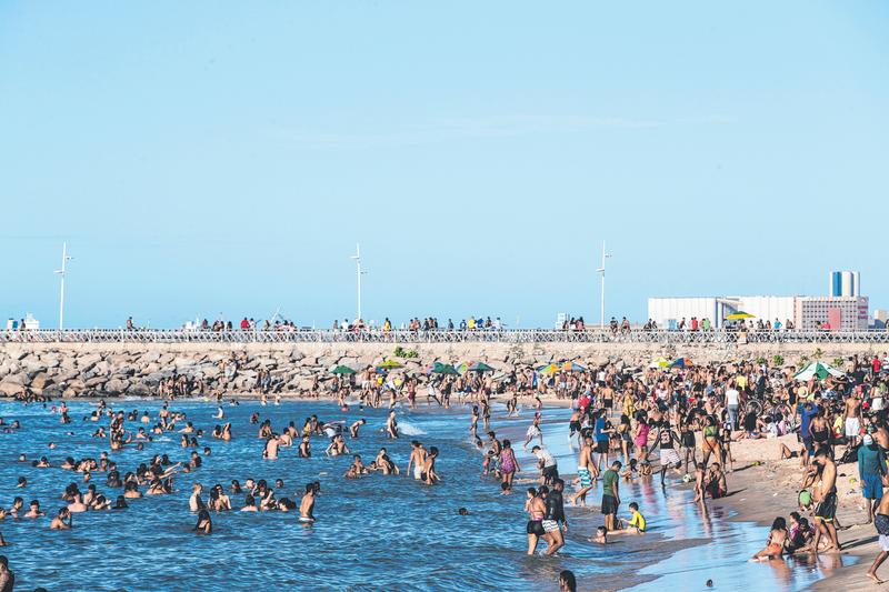 Em outro grupo de três rapazes entre 21 e 24 anos, existe a consciência de que a pandemia não acabou, mas a ida à praia funciona como um prêmio por eles terem cumprido o isolamento desde março. "Não é questão de rebeldia contra o Governo. Só que chega uma hora em que a gente quer desopilar, desestressar", desabafa um deles. "Fico sem máscara pra poder respirar, dar uma renovada. Quando vou pra casa, uso no ônibus junto com álcool em gel", garante. "Não uso porque estou bebendo", simplifica o amigo ao lado, para quem a segunda saída após o isolamento marca também a recuperação de uma lesão à bala que sofreu na coxa esquerda, hoje cicatrizada. "Tava com saudade, a gente não quer ficar preso em casa", afirma.