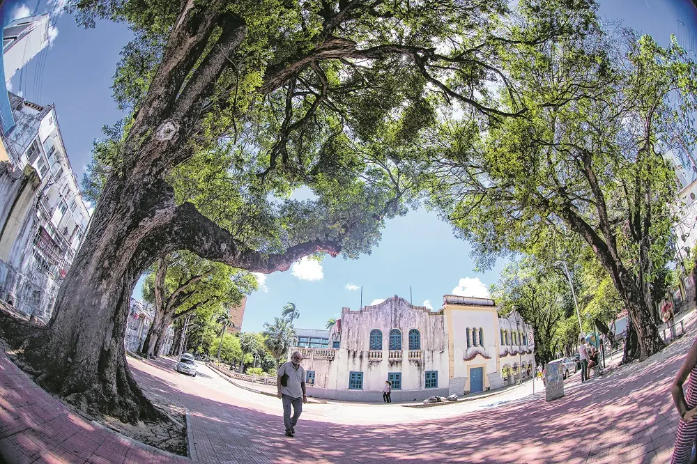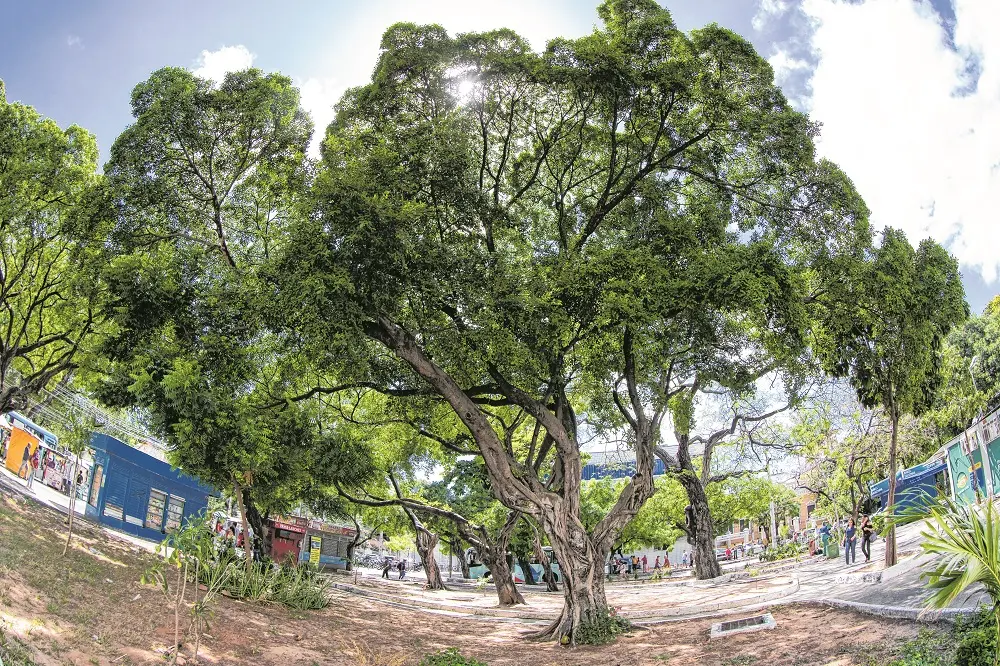Procurar abrigo em um local mais ameno em meio à atribulada correria do dia a dia, descansar no intervalo do trabalho ou apenas fugir do famoso "sol quente". Muitas situações do cotidiano encontram solução em um banco de praça, à sombra de uma boa árvore. Em Fortaleza, espécies centenárias ainda resistem ao tempo e a intervenções urbanas, sobretudo no Centro, onde o fluxo de pessoas é contínuo.