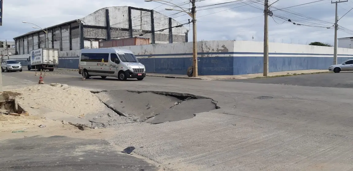 A cratera se formou por causa de um problema em uma galeria pluvial da prefeitura, segundo a Companhia de Água e Esgoto do Estado do Ceará (Cagece). A companhia afirma que profissionais da Secretaria Municipal de Conservação e Serviços Públicos (SCSP) foram enviados ao local para fazer os reparos na via.