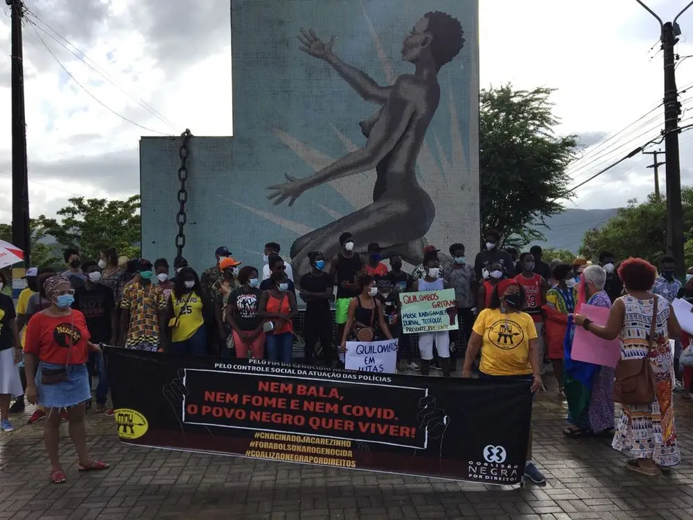 O ato contou com estudantes exibindo faixas com mensagens como "justiça por Moïse", "a carne mais barata do mercado é a carne negra" e ainda "nem bala, nem fome e nem Covid. O povo negro quer viver".