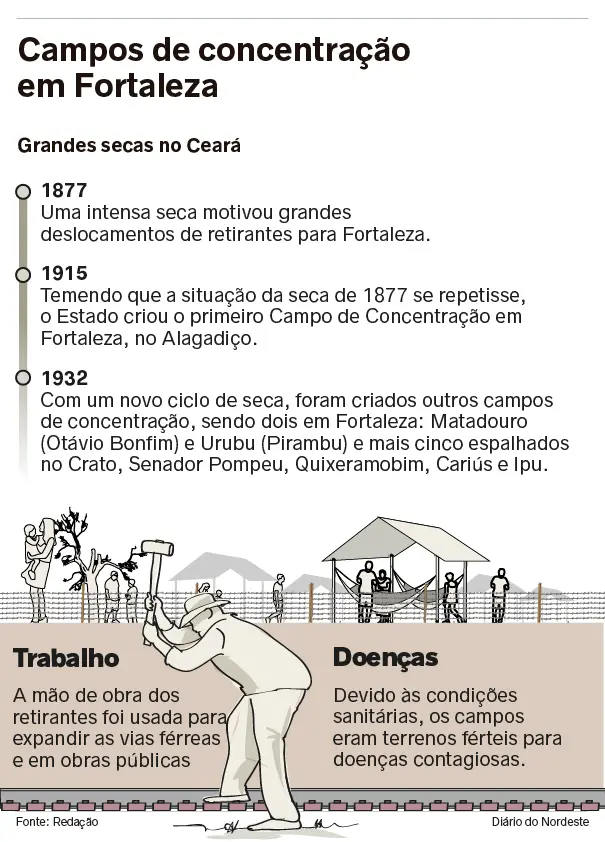 Apesar das características cruéis, a experiência se repetiria em Fortaleza e se espalharia por outros municípios do Ceará, 17 anos depois. Em 1932, um novo ciclo de estiagem intensa revigorou a ideia de aglomerar retirantes. Outros sete campos de concentração foram criados no Estado. Dois deles em Fortaleza.