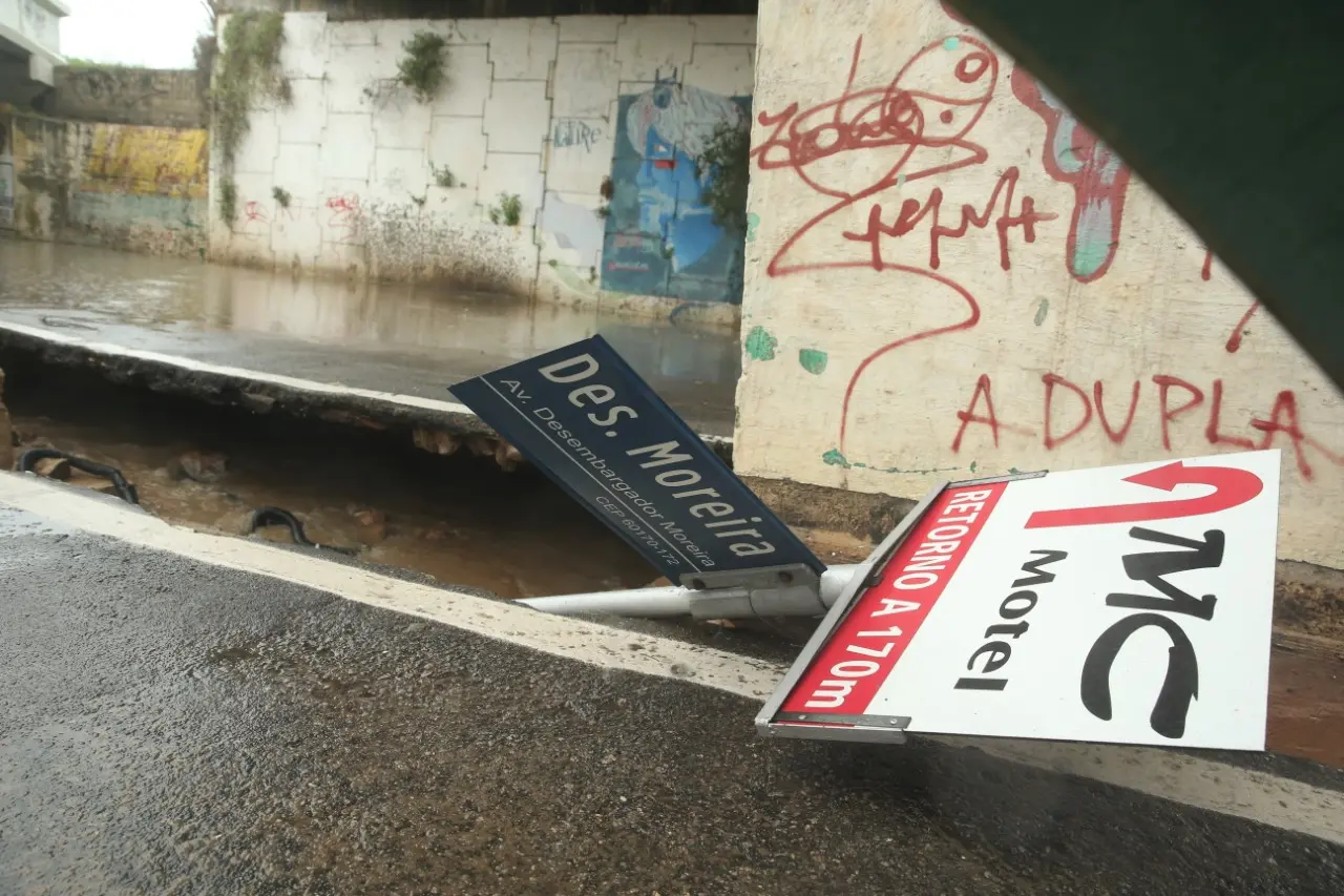 A chuva registrada em Fortaleza nesta sexta-feira (31) fez o canteiro central da Avenida Raul Barbosa, no Bairro São João do Tauape, ceder e a via teve de ser bloqueada nos dois sentidos no fim da manhã. A cratera se abriu embaixo do viaduto da Via Expressa, perto da esquina com a Avenida Pontes Vieira.